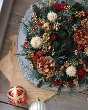 ゴールドの小花や木の実が散りばめ、華やかさもプラスしました。