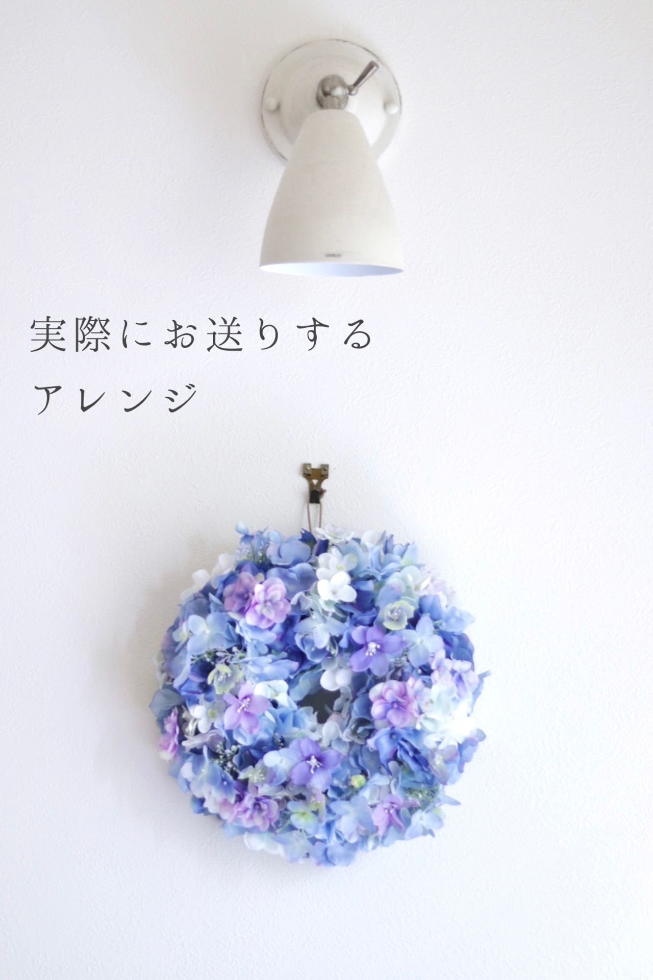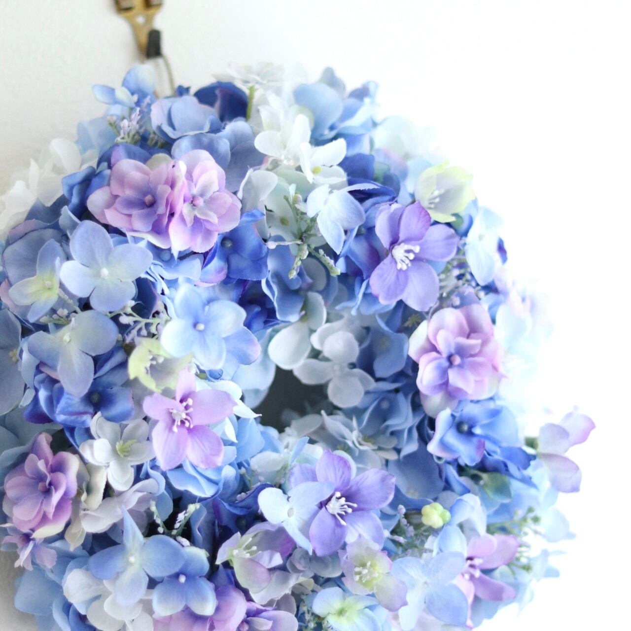 そんなやわらかいグラデーションのあじさいリース。
