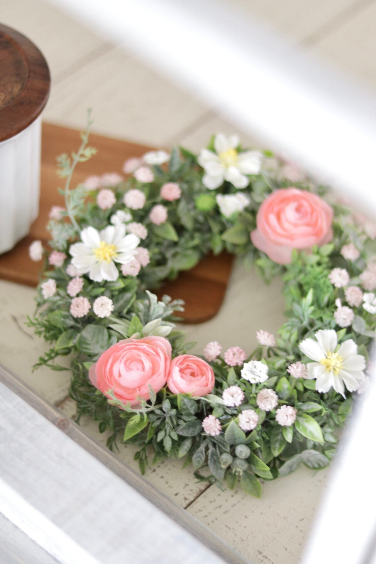 インテリア 春 アーティフィシャルフラワー 入学式 卒業式 新生活 誕生日 記念日 引っ越し祝い 結婚祝い 合格祝い 卒業祝い 退職祝い 就職祝い ギフト 壁飾り リース 壁掛けインテリア 内祝い 母の日 プレゼント ラナンキュラス ローズ ナチュラル 造花