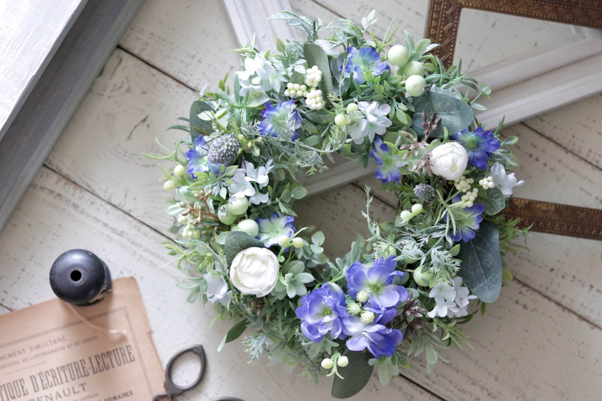 ブルーのお花がさわやかなリース。