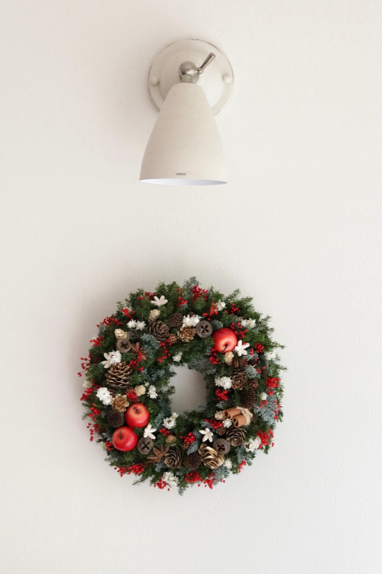 散りばめられた白い小花が甘くなり過ぎずお部屋を明るくしてくれる可愛らしいリース。