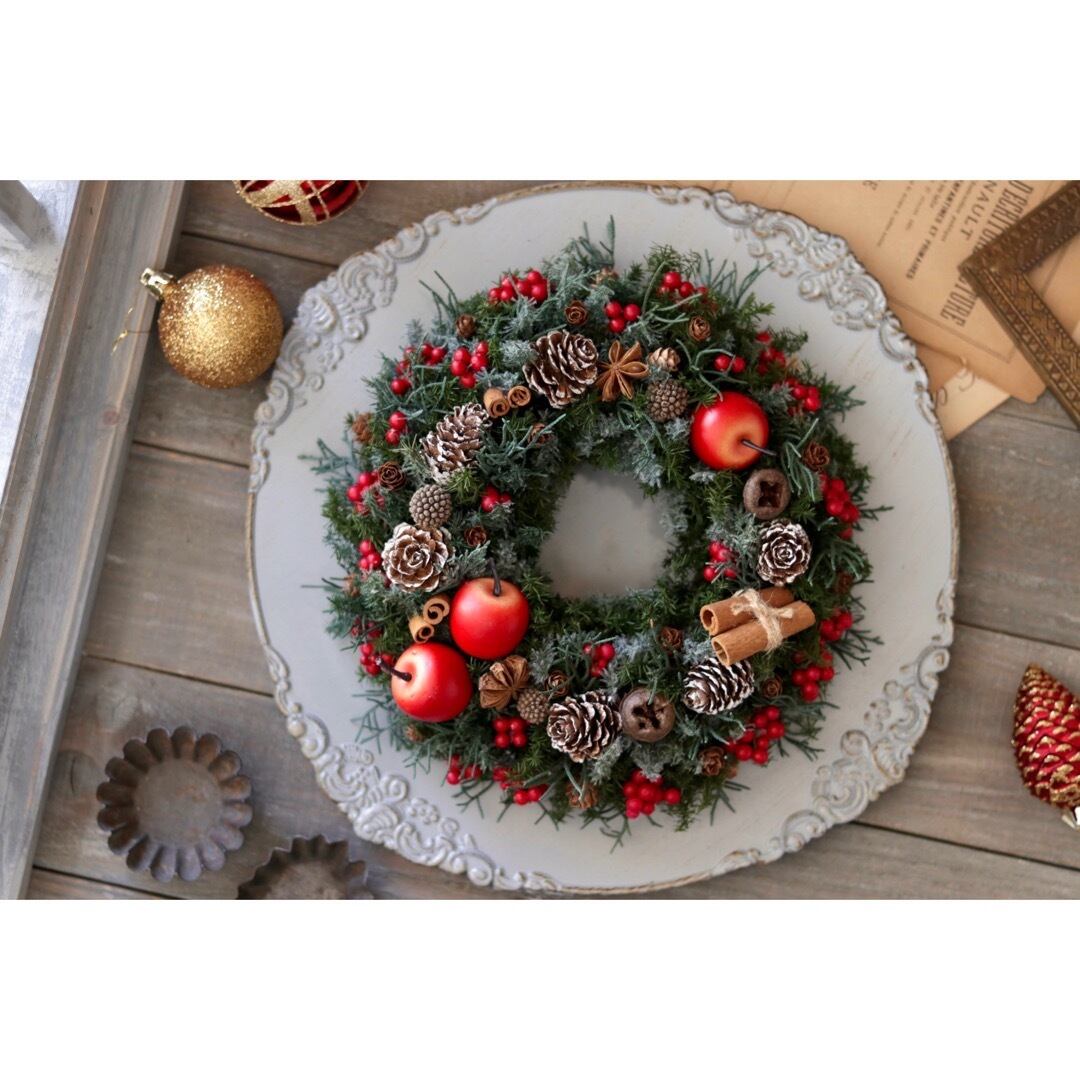 りんごやシナモン、木の実がアクセントとなりお部屋を華やかにしてくれます。
