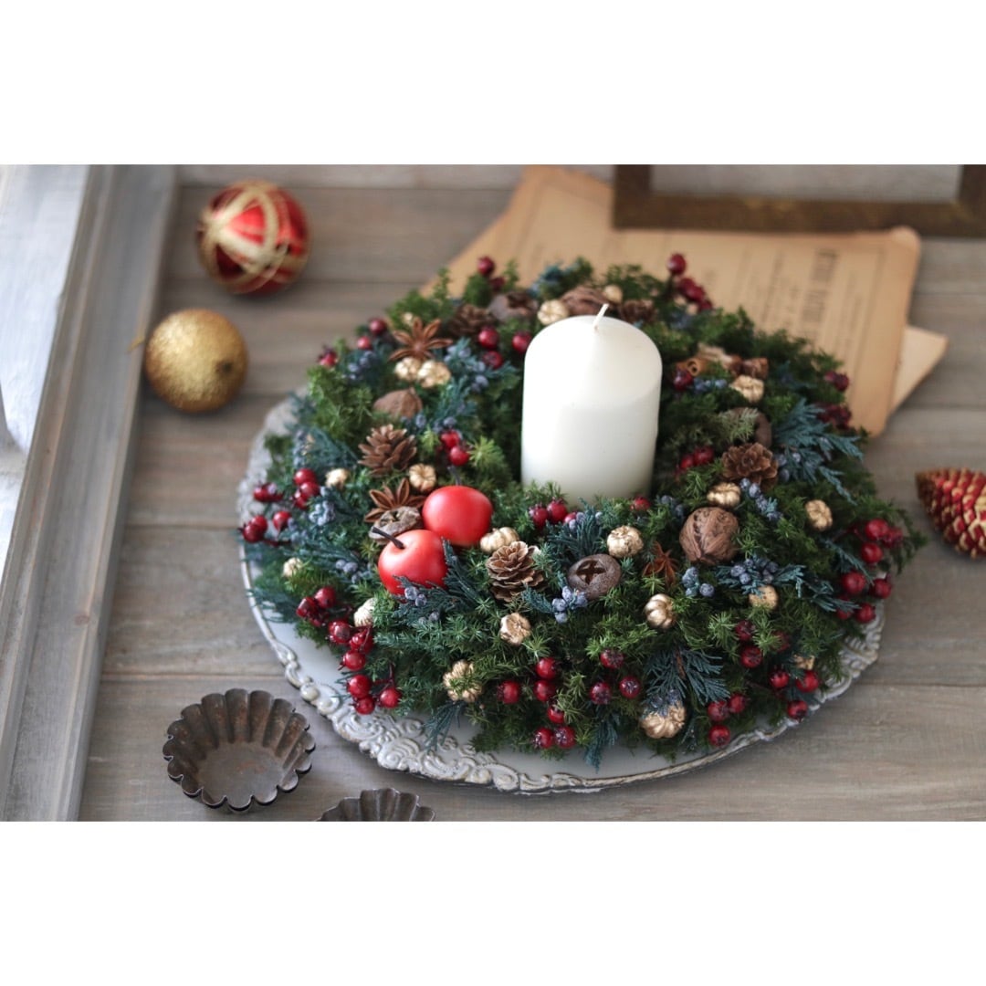 木の実がたっぷりで可愛い雰囲気ですが、落ち着いた色合いなのでインテリアに合わせて飾っていただきやすくなっております。