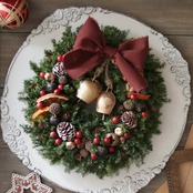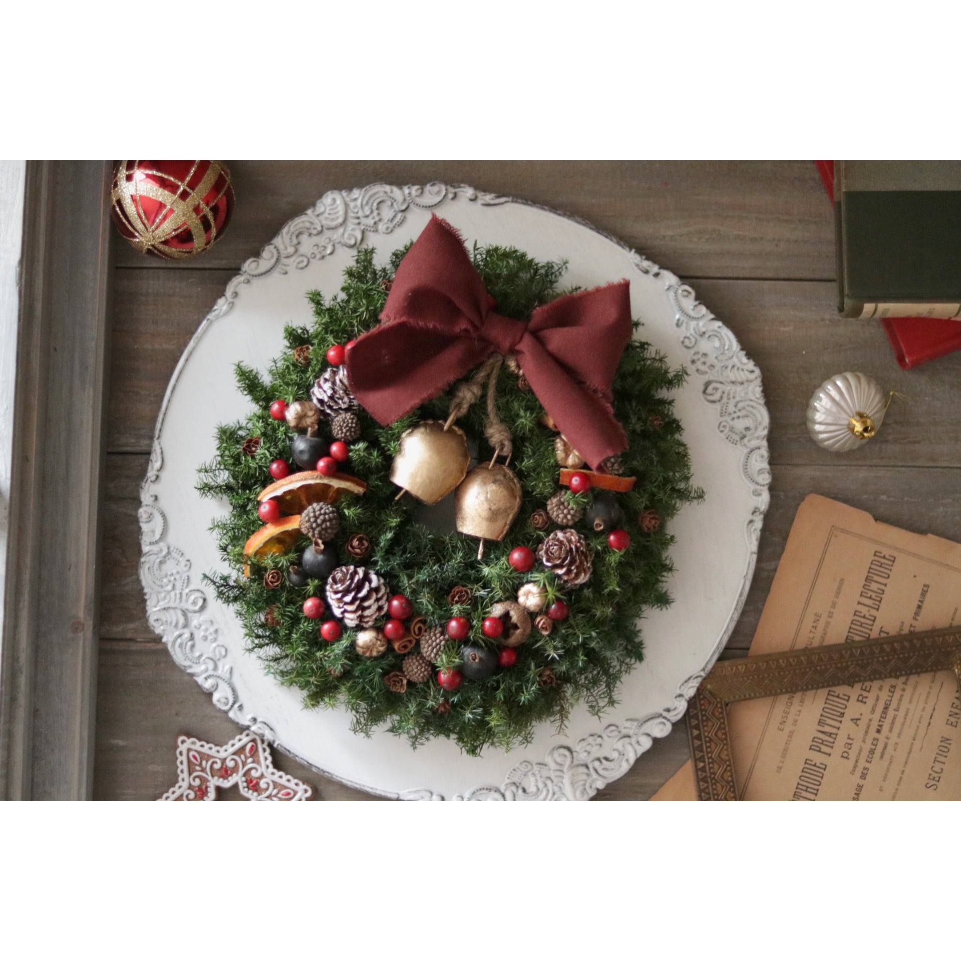 たっぷりの木の実やオレンジがほっこりとした雰囲気で、海外の田舎の昔ながらのクリスマスをイメージしました。