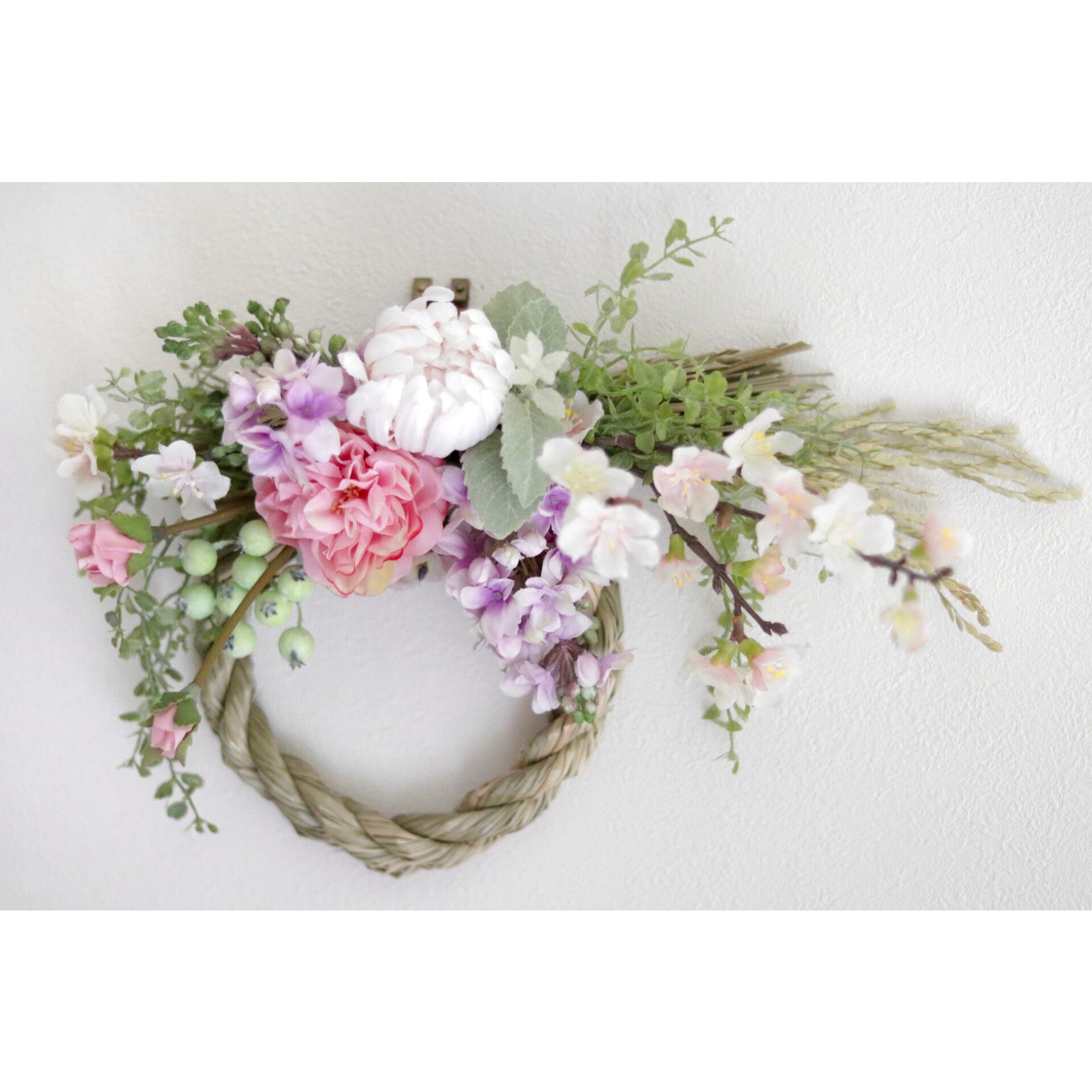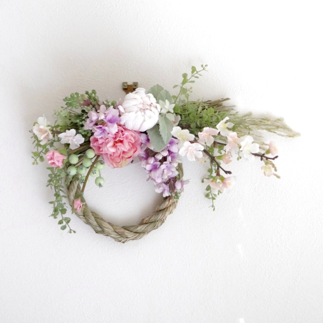 贅沢にアーティフィシャルフラワー(高品質な造花)でお作りしておりますので、外の扉にも安心してお飾りいただけます。